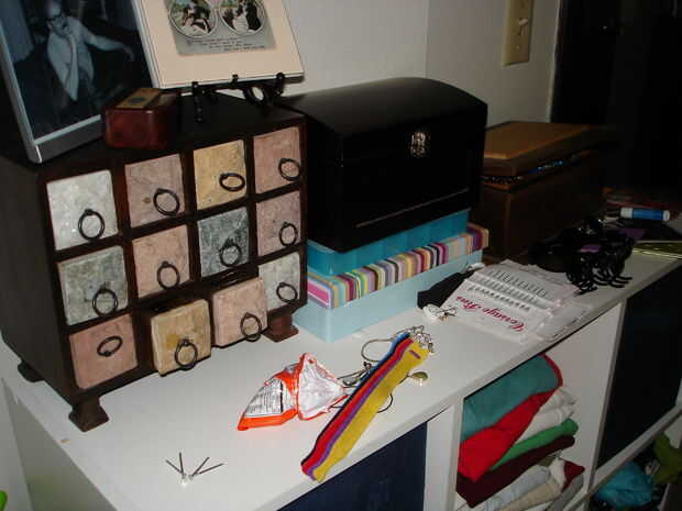 Historia: me gustan mis piezas y se niegan a tirar a cualquiera. La revista real Simple hizo un artículo organizador tocador de una mujer superior usando un tablero bonito que costó por lo menos cien dólares y alfileres ramillete para mostrar sus joyas.
