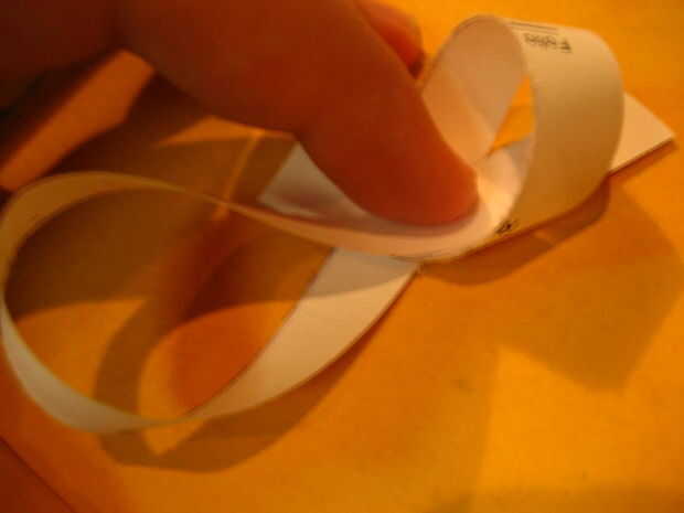 Tomar el otro extremo de la tira de papel y colócala en el bucle que acaba de hacer.