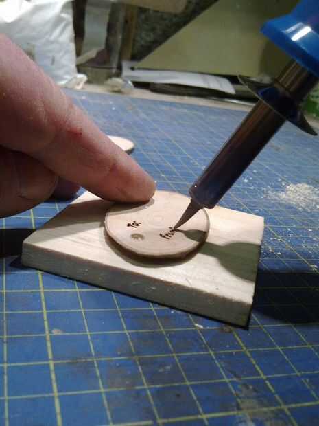 Usar una herramienta de pirograbado para escribir 'A' y 'Desde' y luego el destinatario y el remitente se pueden llenar como sea necesario, (también haría un clavo o algo similar calentado por una llama o un anillo de gas, un viejo destornillador a un punto es una buena alternativa).