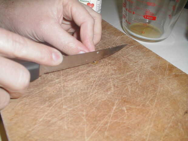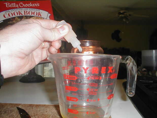 Mida el aceite y poner en un tazón pequeño. Corte 2-3 vitamina E gelcaps y exprimir el contenido en el aceite (esto es técnico opcional, pero la vitamina E evitará que el aceite se vuelva rancio. Puede utilizar este conservante como venta característica así: "Con vitamina E!!!") Agregar unas gotas (2-3) de aceite perfumado, si va a utilizar. Mezclar los aceites.