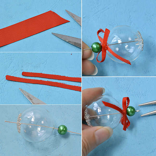 3ª, lazo y una cinta roja en la parte superior de la cuenta de Murano del arco como se muestra y hacer un lazo en el extremo del headpin del palillo.