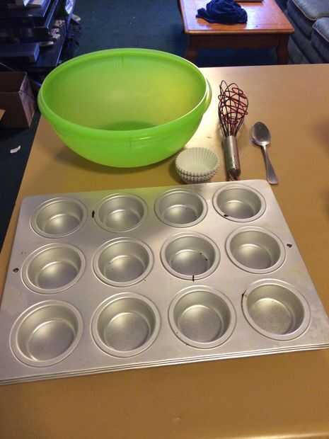 Esta receta para un batido grande del tazón de fuente, aproximadamente 36 papeles pintados/capa, un batidor, una cuchara grande y 3 moldes de cupcake tamaño regular.