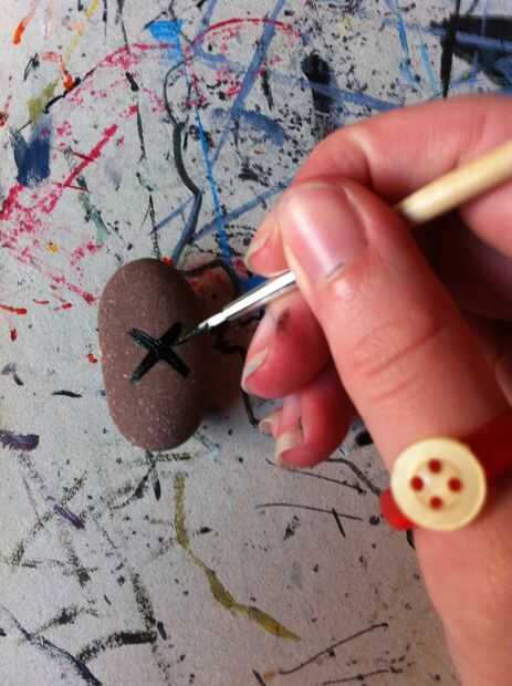Tomé mis piedras limpiamos agradables, ponga una pequeña cantidad si azul bordada en la espalda y pegados a un tablero para asegurarse de que no deslicen en cualquier lugar. La empecé a dolor en mis runas cuidadosamente en mi pintura negra. Cada uno tiene dos capas para asegurarse de que la pintura estaba muy oscuro.