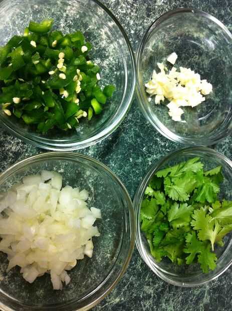 1/4 de taza de cebolla picada, 1/2 taza de cilantro pulsada de hojas.