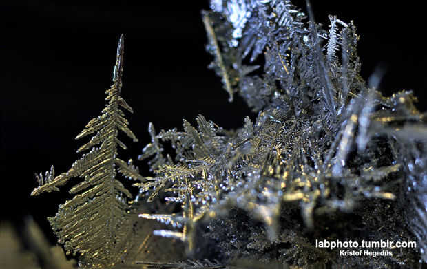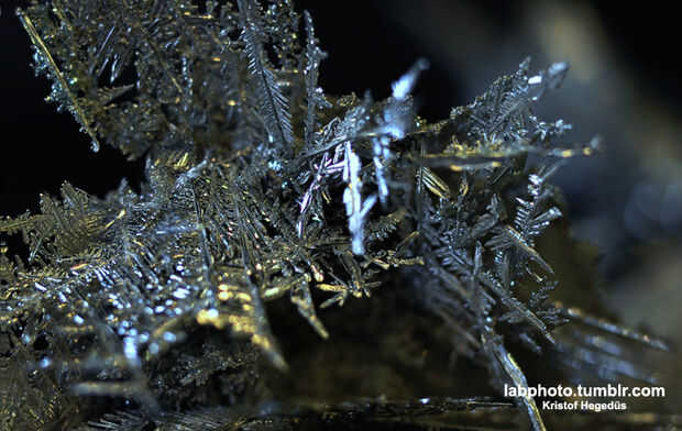 ¿Cómo se hace? Hacer una solución (alrededor de 10g/litro o más diluido) de nitrato de plata con agua destilada, añadir algunos sulfato de plata en cualquier parte (lo que no se disuelven), lugar en un lugar oscuro donde no ser molestado durante un mes o así y dejar caer unos pedazos de cobre metal en él. Cierre la puerta y no molestar por un tiempo.