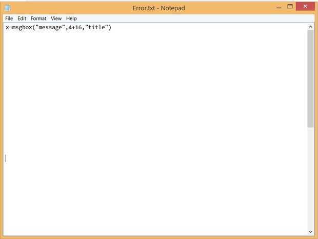 Al abrir el archivo vbs, obtendrá un mensaje de error.