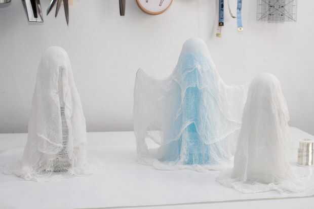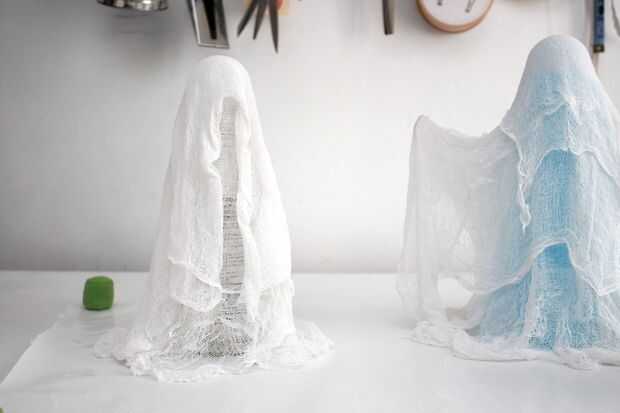 Usted querrá cortar las piezas de tela que cubren fácilmente los cuerpos de espíritu que ha hecho con un pequeño exceso. Este exceso estopilla de la piscina en la parte inferior de los fantasmas y déjelo reposar.