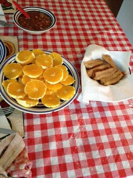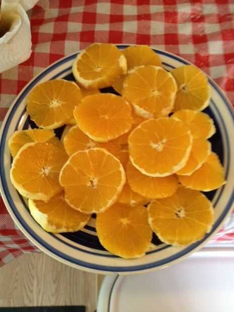 Cortar 2 naranjas para agregar al plato de un sabor cítrico con la carne.