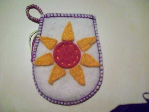 una herramienta Aguijoneador (como llamarla) se utiliza para unir dos piezas de tela de fieltro juntos sin cualquier otro material de un solo uso como cadena. Primer cuadro se hace una pieza con hilo y aguja. Segunda imagen se realiza utilizando la herramienta de Aguijoneador. Esta es una colaboración entre mi mamá y yo.