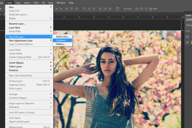 En primer lugar - hacer nueva capa de relleno. Ir a capa-nueva-gradiente de relleno.
