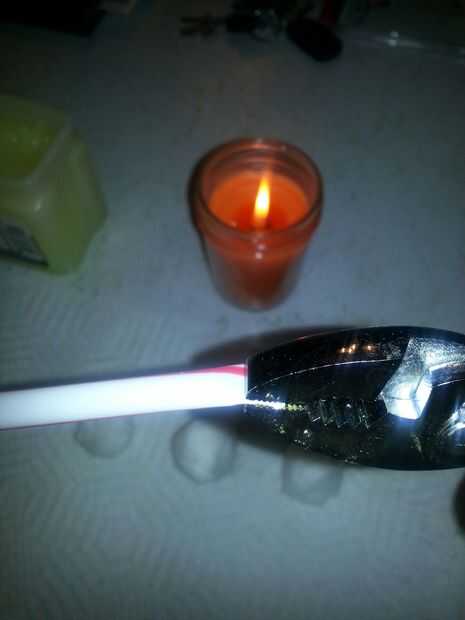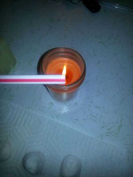 Giro su paja aproximadamente 2 pulgadas por encima de la llama de la llama de la vela. Deje que el calor, no la llama, comienza a fundir un extremo de la paja. Rápidamente tome sus alicates y prensar el extremo de la pajilla. Suelo hacer este paso varias veces para asegurarse de que obtener un sello muy buena.