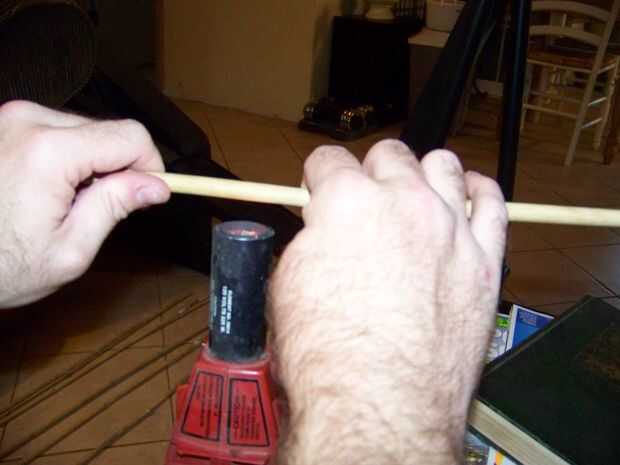Las curvas pueden eliminarse calentando el bambú flexible y flexión en la dirección opuesta. El eje puede ser bloqueado luego soplando en el bambú para enfriarlo.