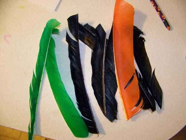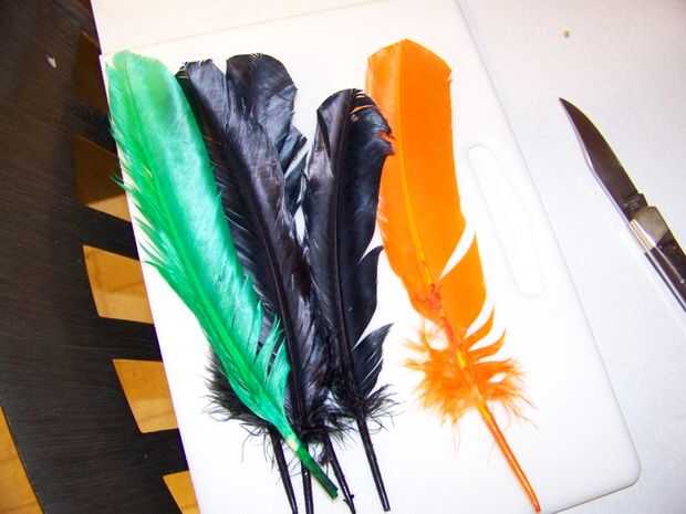 Ir a la tienda de artesanía y comprar algunos pavo teñido de plumas.