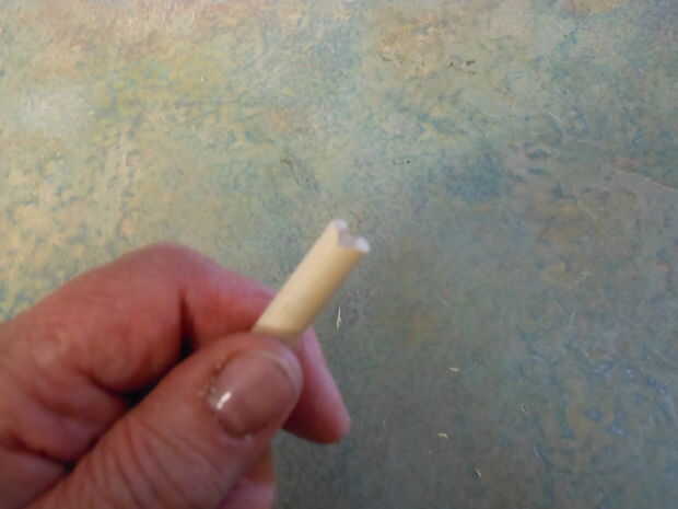 Nock de la flecha: La flecha necesita de un lugar para descansar la cuerda del arco en el extremo de la flecha. Después de mucha contemplación y experimentación, decidir la forma más sencilla de hacer un nock es cortar sólo uno en la madera, por lo tanto no hay nada que romper, perder o costo adicional. He utilizado el cortador de la caja y corte (un poco a la vez) una forma de V en un extremo de cada flecha. No tiene que ser profundo ni nada, lo suficiente para la cuerda del arco donde usted lo desea, cada vez que te dibuje el arco.