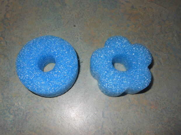 Puntas de flecha: quería estas flechas seguras alrededor de cosas que los muchachos adolescentes pueden disparar. Tuve un par de tallarines de la piscina en el armario del juguete, que llevó a cabo y cortar pedazos de una pulgada, de los 2 tipos, redondo y en forma de flor.