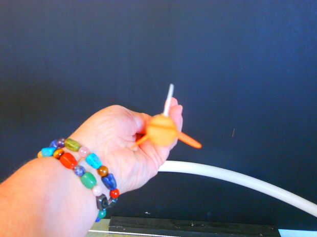 Pegamento en las otras 2 tiras, echando un vistazo donde se encuentra 1/3 de la manera alrededor del eje.  Deje que se seque.