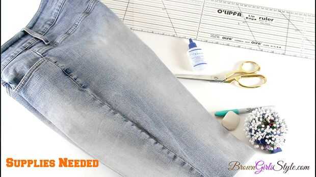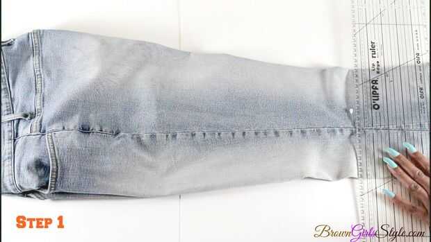 Prueba tus jeans en primer lugar, ponen un punto con un marcador o pin donde quieras tus franjas para terminar.