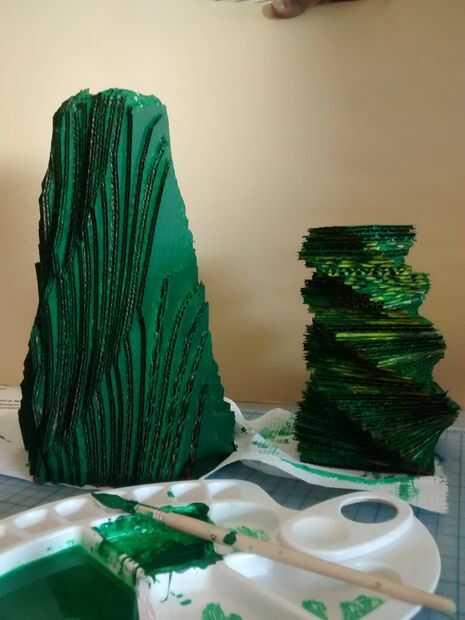 Creamos el florero con cartón como un material. Utilizamos Autodesk Inventor, Make 123D y planos de corte de cartón para la fabricación de las piezas. Unir las piezas y pintura de aerosol de las partes.