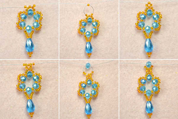 2 º, añadir 2 bolas en cada alambre de la semilla otra vez, cruzar dos cables a un grano de cristal del ábaco y apriete los alambres;
