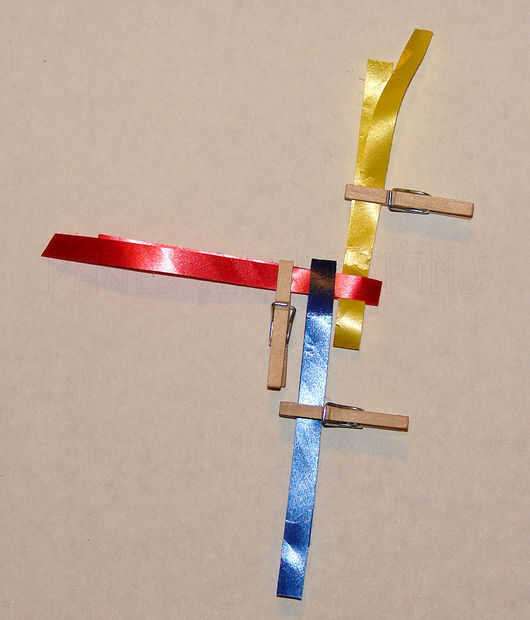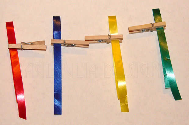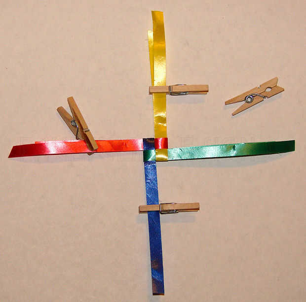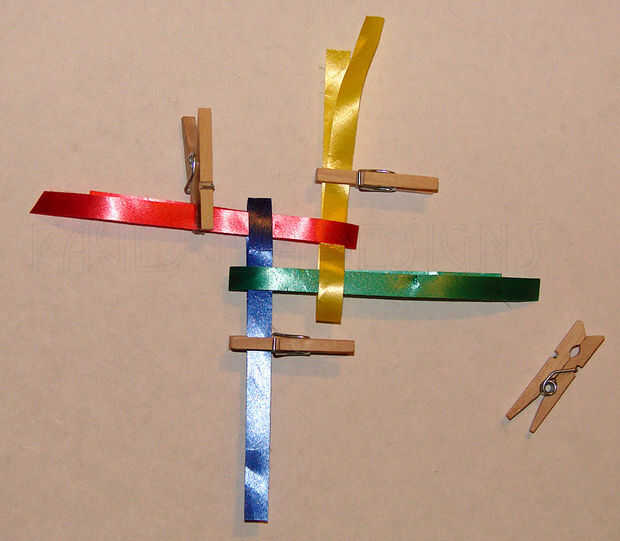 e. a continuación, apriételos tirando cada tira doblada lejos del centro. Esto será temporalmente conectarlos juntos. Tiene los pines de ropa para mantener cada tira doblada en su lugar.