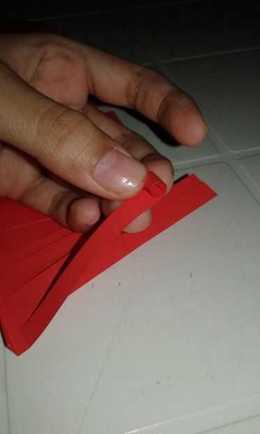 Después de cortar las rayas, foll las rayas. Asegúrese de que el papel se enrolla firmemente.
