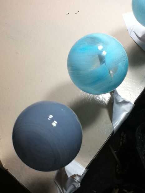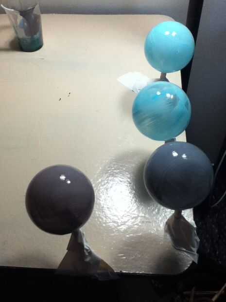 A la apertura de ornamentos pintados-hacia abajo (donde el hangar solía ser) y deje secar.