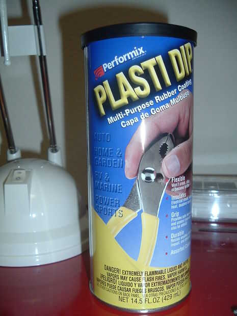 Performix Plasti Dip (se puede encontrar en el Home Depot en el área de pintura alrededor de la pintura en aerosol)