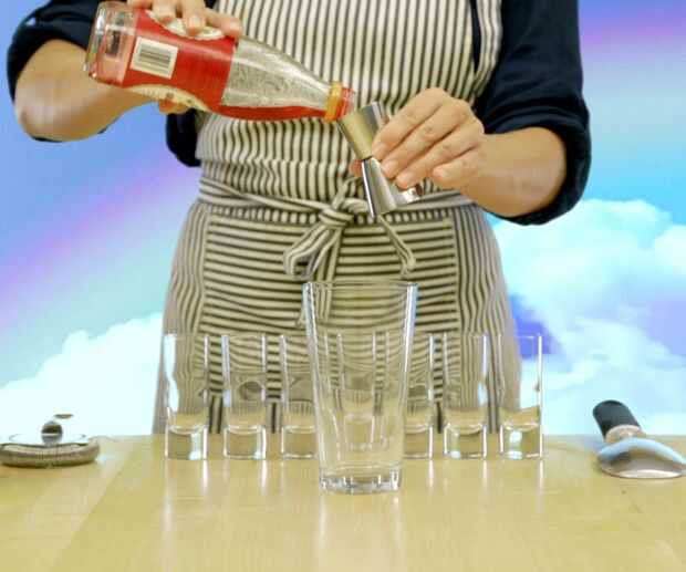 Configurar sus 7 vasos de chupito en una línea delante de usted. Coloque el vibrador justo en frente de la línea de gafas y todo lo demás que debe poner a su alcance.