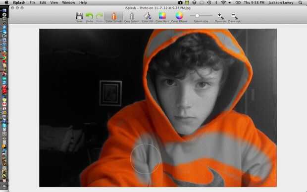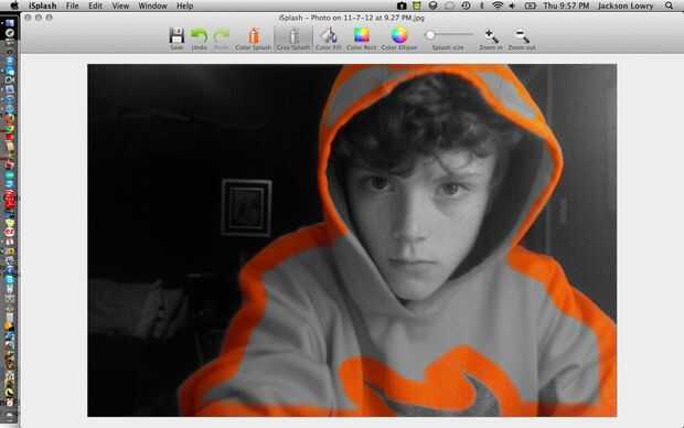 Inicio colorear alrededor del interior de los bordes del objeto que desea hacen pop. En mi foto quería el Swoosh ser gris para que bordes alrededor de eso también. He encontrado que utilizando un cepillo de tamaño mayor ayuda porque mueva el cepillo suave y con menos agitación. Pinceles de tamaño más pequeño "shake" más a mí. Otra forma de ayudar es ralentizar la velocidad de seguimiento de su ratón o del trackpad en configuración. Esto puede ayudar mucho si tienes problemas al mover el ratón demasiado rápido.