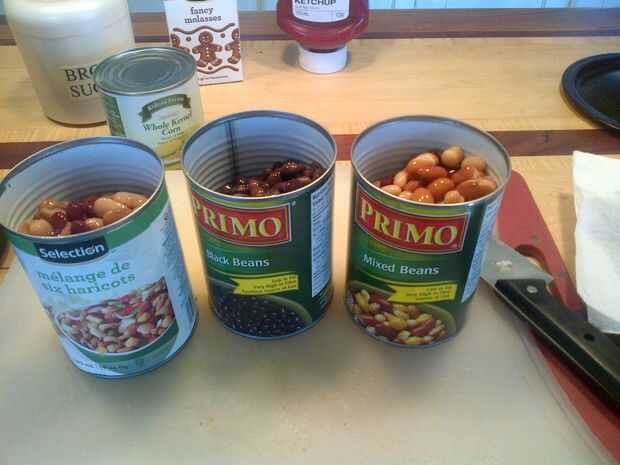 Abrir sus latas de frijoles y drenar el exceso de líquido. Agregue los frijoles a la olla. Opcionalmente puede Agregar granos de maíz a la receta. Mis hijos aman maíz así que añadido it... su llamada realmente...