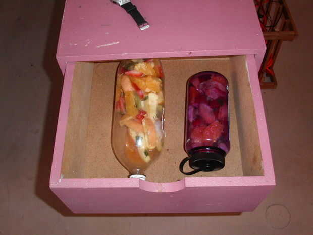 Puse las botellas en un cajón vacío y había cerrado durante la primera hora - tengo que ser honesta, fue la primera vez que hacía esto y no sabía lo que sucedería. Después de una hora pude ver que las botellas bajo presión, pero no en cualquier peligro de explosión, y así se trasladaron al refrigerador por la noche.