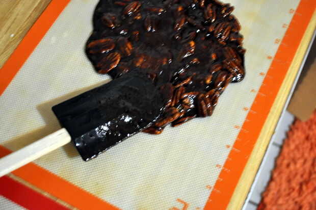 El título de este paso prácticamente lo dice todo. Volcar con cuidado la mezcla hacia fuera sobre su superficie antiadherente (si usted hizo la manera científica que sabe usted cuán caliente se trata. Si usted fue la ruta de cieno créeme que no estar mutando en otra cosa que una persona con quemaduras de segundo grado si usted descarga esto en sí mismo.). Luego, utilizando que la espátula Esparza la mezcla hacia fuera así que la nuez no se apilan todos unos sobre otros. Ahora esperamos hasta que se haya enfriado.