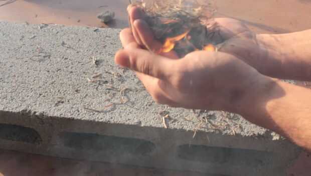 el mejor resultado que hice con cubierta la brasa con mi mano y la hierba seca, cuando vemos mucho humo, que estás en el camino correcto, ahora usted puede soplar más fuerte y en dos minutos que se puede ver el fuego se convierten en la mano