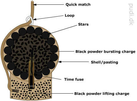 Cuando se trabaja con los fuegos artificiales es muy importante utilizar equipo de seguridad apropiado mientras que hace. Se recomienda usar gafas de seguridad o careta durante la fabricación. Mientras se hace la cáscara, se debe hacer lejos de fuentes de calor, tales como velas, cigarrillos, estufas etc..