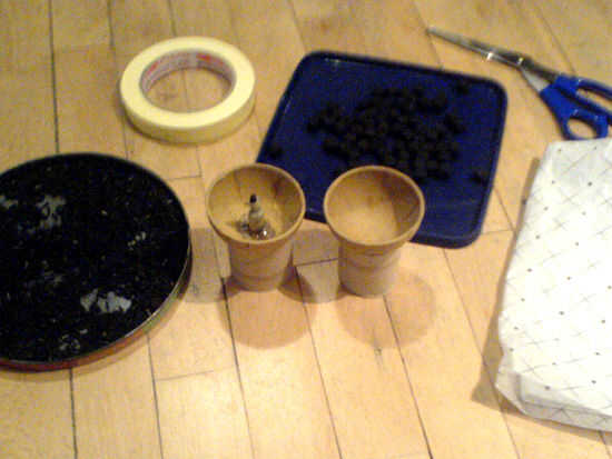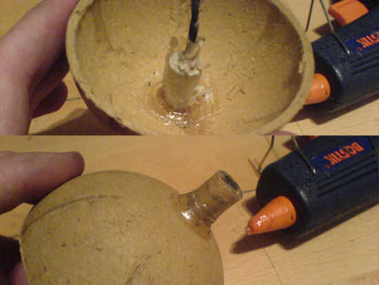 Coloque cada hemisferio sobre un soporte, que puede hacerse simplemente fuera un vacío Portarrollos de papel higiénico por la mitad. Esto evitará que los hemisferios rodando alrededor cuando usted les está llenando.