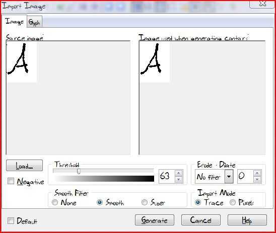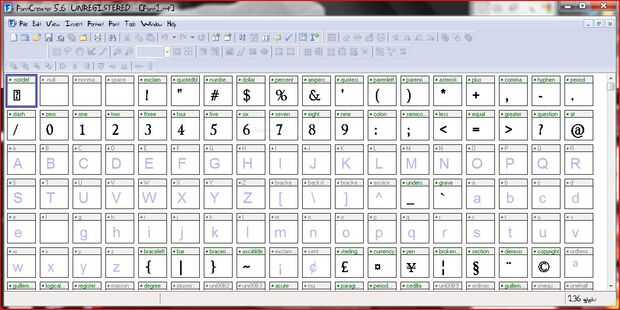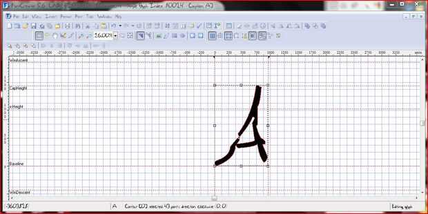 instalar el programa fuente, a continuación, haga clic en archivo > nuevo. después de abrirlo. nombre de la fuente lo que quieras. Deje los valores predeterminados del resto. Haga doble clic en la capital una caja de glifo. Presione el botón de insertar archivo, luego vaya a la capital un archivo de glifo. para abrirlo. después de necesita cambiar el tamaño de la imagen para adaptarse a la línea capital. puede cambiar el tamaño uniformemente manteniendo pulsado el botón shift izquierda en el teclado. después de que haya terminado de cambiar el tamaño, Presione ctrl s para guardar. guardar en algún lugar que recuerde. Pulse el siguiente glifo para mover al siguiente punto y ver en la parte superior para ver qué glifo debe subir. una vez haya terminado el juego de caracteres entero, pasar al siguiente paso. Si pasa algo loca y sus cartas parecen se convierten adentro hacia fuera, dejar ir, pulse ctrl Z deshacer, a continuación, arrastre un cuadro alrededor del glifo completo. debe seleccionar el glifo de todo y no sólo el interior o contorno exterior. Edit: por cierto, necesita hacer una fuente nueva con el mismo nombre de familia como su pasado pero seguido de la palabra audaz para conseguir el efecto bold. uso erosionar filtro uno o dos al importar la imagen de su glifo bmp.