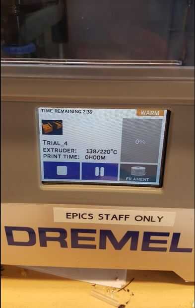 Al comenzar a correr, la impresora automáticamente empezar a construir el objeto. Ninguna acción adicional es necesario. Como veis en la foto, el "tiempo restante: 2:39". Generalmente, la impresión tarda 2-5 horas para aplicaciones de prototipado.