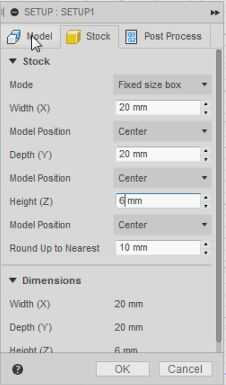 Haga clic en la pestaña de "Stock" y definir la profundidad de lo que es el material común. En este caso, medir el espesor de 1/4" madera contrachapada rinde aproximadamente 6mm, por lo que la profundidad debe ser de 6mm. La anchura y la altura deben estar directamente relacionada con el modelo y no necesitan ser cambiadas.