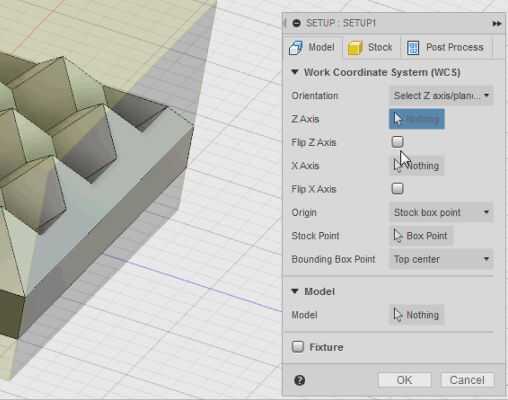 Haga clic en "Configuración". Debe ser directamente a la derecha del menú desplegable que acababa de usar. Esto hará que aparezca un cuadro de diálogo de configuración en el lado derecho de la pantalla. Habrá tres pestañas: modelo, material y Post proceso. Sólo utilizaremos modelo y Stock.