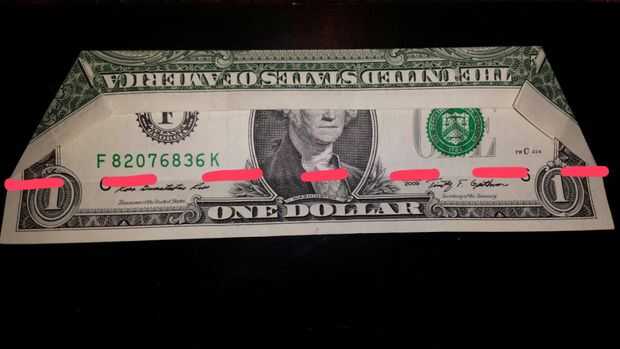 Luego, se pliega ambas esquinas superiores a la media, el final en el pliegue del pliegue inferior que hiciste anteriormente.