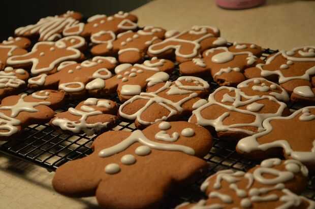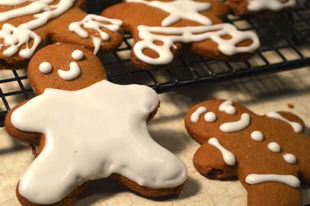 Un hombre de jengibre es una galleta o galleta hecha de pan de jengibre, generalmente en la forma de un humano estilizado, aunque otras formas, especialmente temporadas temas y personajes, son bastante comunes. Mayoría de los hombres de pan de jengibre comparte la misma forma más o menos humanoide, con patas rechonchas y sin dedos. Muchos hombres de pan de jengibre tienen un rostro, aunque si las características son hendiduras en la cara sí u otros dulces pegan encendido con glaseado o chocolate varía de receta a receta. Otras decoraciones son comunes; cabello, puños de camisa y zapatos a veces se aplican, pero en gran medida la decoración más popular es botones de camisa, que se representan tradicionalmente por gotas de goma, hielo o pasas de uva. https://en.wikipedia.org/wiki/Gingerbread_man