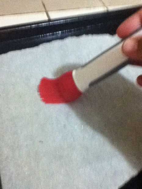 prepara la hoja de galleta. línea con papel de pergamino y ligeramente bruch con aceite.