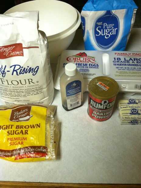 Ingredientes:-harina (2 1/2 tazas) - caña de azúcar (1/2 taza)-bicarbonato de sodio (1/2 cucharadita)-(2 cucharaditas) de extracto de vainilla-Azúcar (1 taza) -2 huevos - mantequilla ablandada (1 taza)-(1/4 de cucharadita) de sal - canela molida (1 cucharada) materiales:-Ensaladera-medio-tamaño del tazón de fuente - pequeño del tazón de fuente - batidor de alambre-batidora eléctrica (de mano o estacionaria) - tazas de medición-medición cucharas - hoja de Cookie (s)-cuchara - horno Precaliente el horno a 300 F!!!!!!