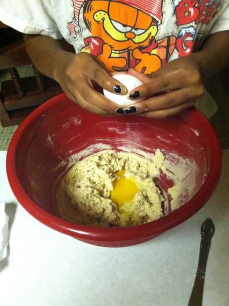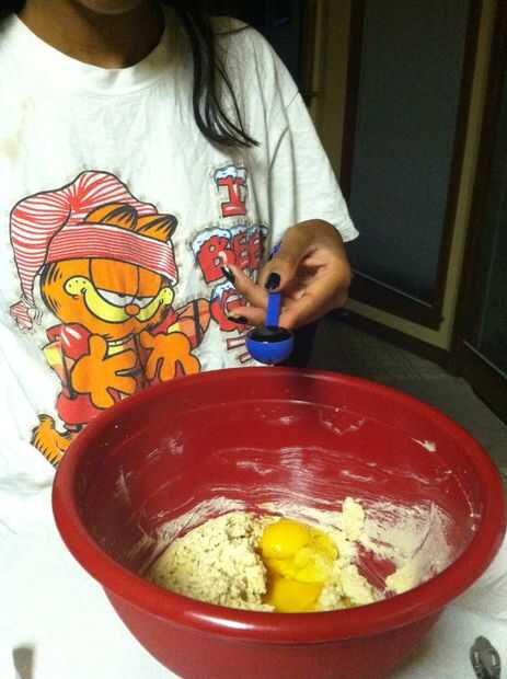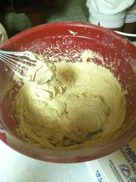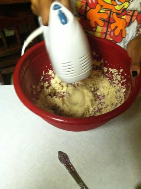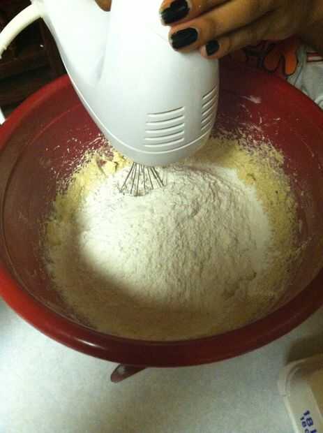 1) utilizar una batidora eléctrica mezclar 1 taza de mantequilla a la mezcla de azúcar seco. Crack 2) y añadir dos huevos a la mezcla. 3) agregar 2 cucharaditas de extracto de vainilla. Mix 4) junto con una batidora eléctrica a velocidad media hasta ligero y mullido. 5) agregar la mezcla de harina seca. 6) mezcla con batidora eléctrica.