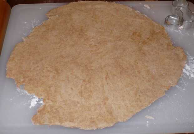 3. con el rodillo aplanar la masa hasta que quede 1/4 pulgada de espesor.