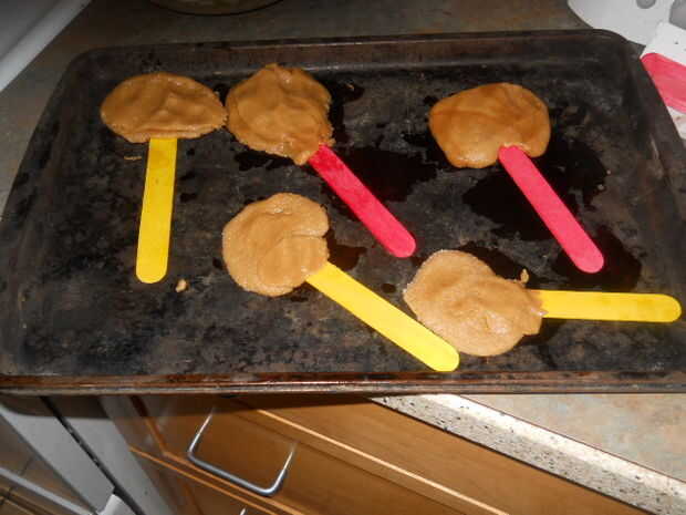 4. Cuando listo que agarrar un Popsicle stick y ponerlo al final de la cookie. Asegúrese de que es suficiente para sostener la cookie.