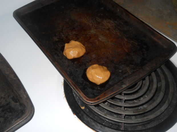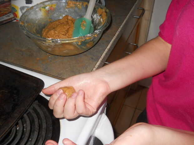 1. Primero se agarra algunos de la mezcla y hacerla una bola y ponerla en la bandeja para hornear galletas.