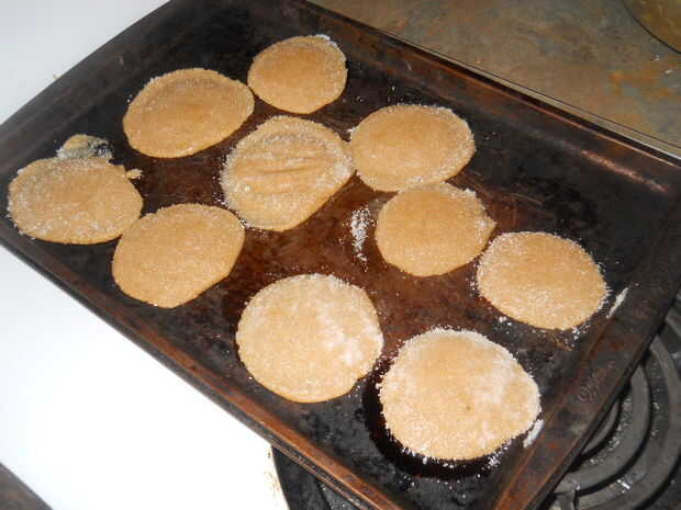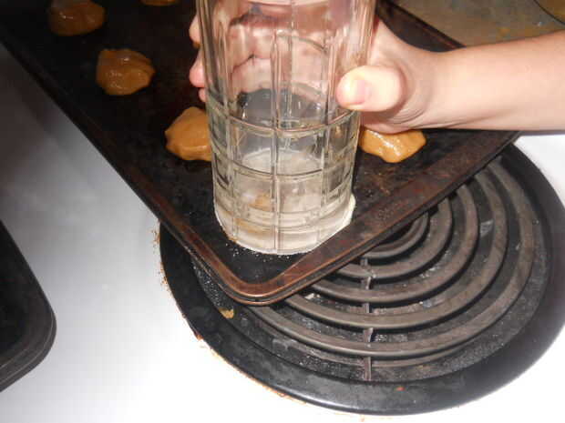 3. Cuando llegue el azúcar en la taza de aplanar las galletas con la Copa
