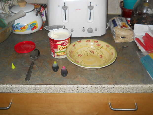 a color guinda necesita un recipiente, algunos a la formación de hielo y una cuchara. Si desea un color diferente necesita alimento colorante. Luego se mezclan los dos colores juntos para hacer el color. Mezcla hasta que obtengas el color que buscas.