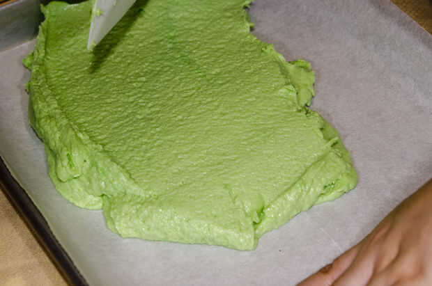 -En otro tazón Añada 8 gotas de colorante verde y mezcle uniformemente